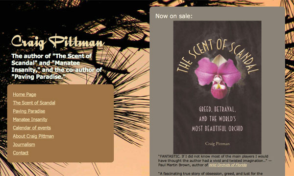 Website for the author of "The Scent of Scandal" and "Manatee Insanity," and the co-author of "Paving Paradise."