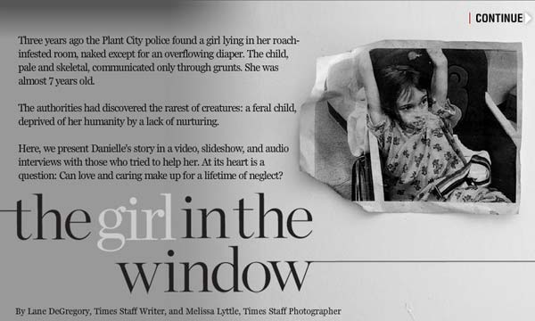 Reporter Lane DeGregory's Pulitzer Prize winning story of a 7-year-old girl, unable to speak or feed herself, found in a filthy, roach-infested room, her diaper overflowing.
