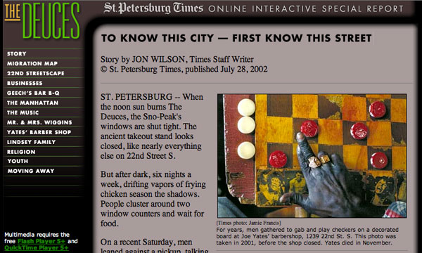 2008 SND: Award of Excellence for Non-Breaking News | 58th Annual Green Eyeshade Awards: Best Use Of Multimedia First Place New Media | Florida Society of Newspaper Editors: Multimedia: Third Place